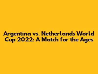 Hey guys! Let's dive deep into one of the most thrilling matches of the 2022 FIFA World Cup – the epic clash between Argentina and the Netherlands! This quarter-final showdown wasn't just a game; it was a rollercoaster of emotions, a tactical battle, and a display of sheer grit and determination from both sides. We're talking about a match that had everything: stunning goals, nail-biting penalties, and enough drama to keep you on the edge of your seat. So, buckle up as we revisit this classic encounter, breaking down the key moments, the tactical masterstrokes, and the sheer brilliance that made this game a true World Cup spectacle. Get ready to relive the magic, the tension, and the unforgettable memories of Argentina vs. Netherlands!