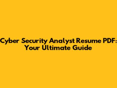 Cyber Security Analyst Resume: PDF Guide & Examples