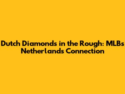 Dutch Diamonds In The Rough: MLB's Netherlands Connection