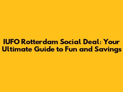 Hey guys! Are you looking for an awesome experience in Rotterdam that won't break the bank? Well, you're in luck! This guide is all about the IUFO Rotterdam Social Deal, a fantastic way to enjoy the city while keeping your wallet happy. We'll dive into what the IUFO experience is all about, how the Social Deal works, and why it's a must-try for locals and tourists alike. Get ready to explore Rotterdam like never before!