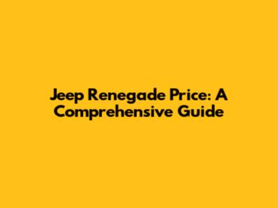Jeep Renegade Price: Everything You Need To Know