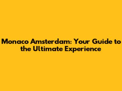 Monaco Amsterdam: Your Guide To The Ultimate Experience