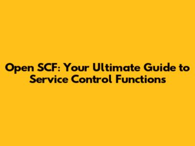 Open SCF: Your Guide To Service Control Functions