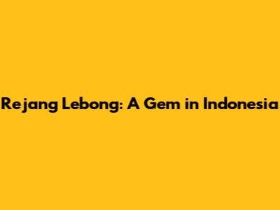 Rejang Lebong: A Gem In Indonesia