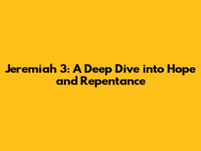 Jeremiah 3 is a powerful reminder of God's unwavering love and His relentless pursuit of His people. It's a call to examine our own hearts, to confess our sins, and to turn back to Him with sincerity and humility. And it's a promise that no matter how dark things may seem, there is always hope for a brighter future through His grace.