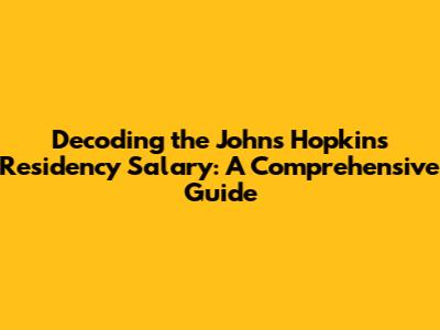Unveiling The Johns Hopkins Residency Salary: Your Guide